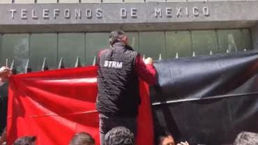 Estalla huelga en Telmex, colocan las banderas rojinegras
