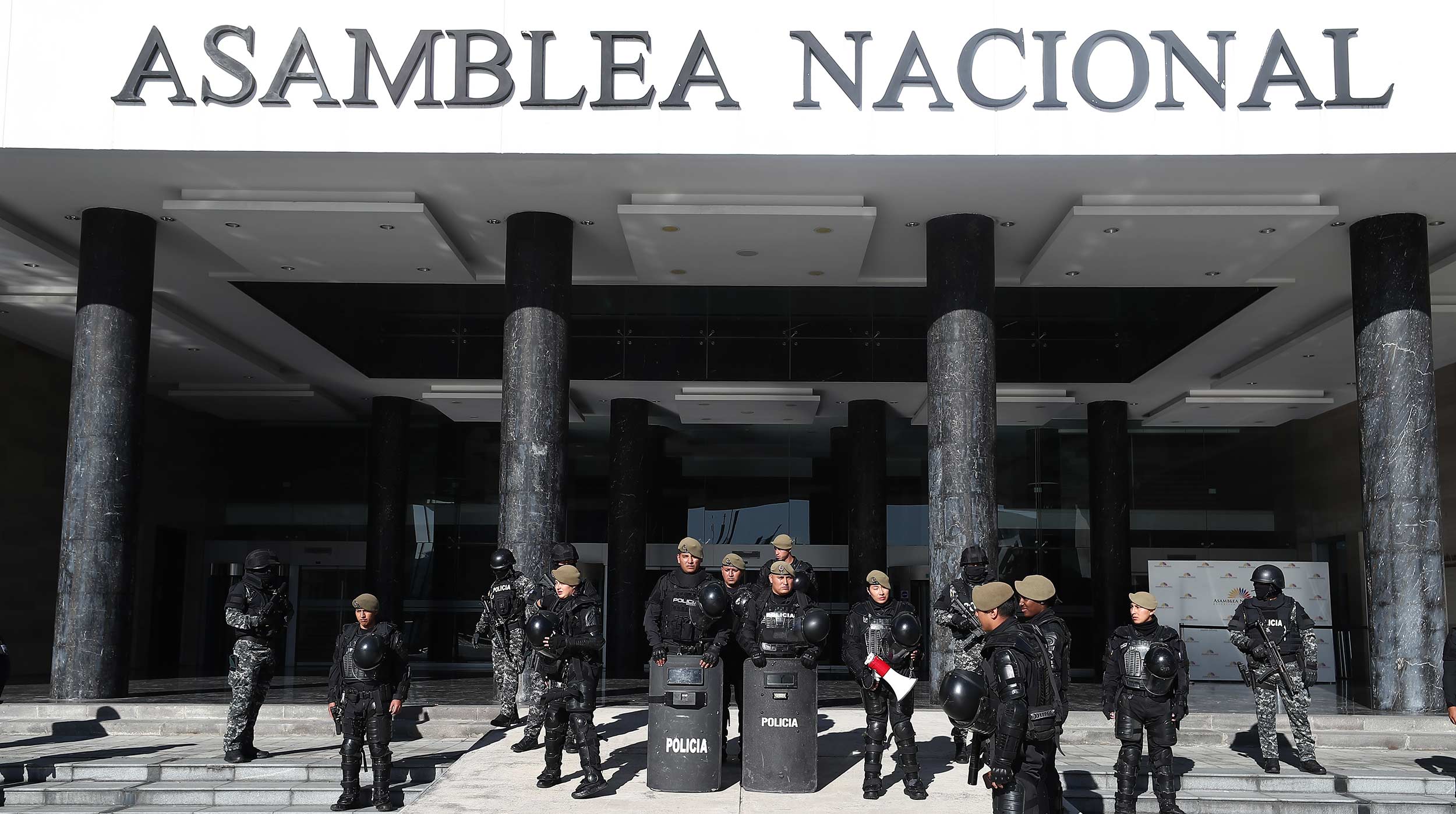 Decenas de militares y policías cerraron la Asamblea Nacional de Ecuador, institución disuelta este miércoles por el jefe de Estado, Guillermo Lasso, al aplicar la llamada "muerte cruzada", por "grave conmoción interna y política".