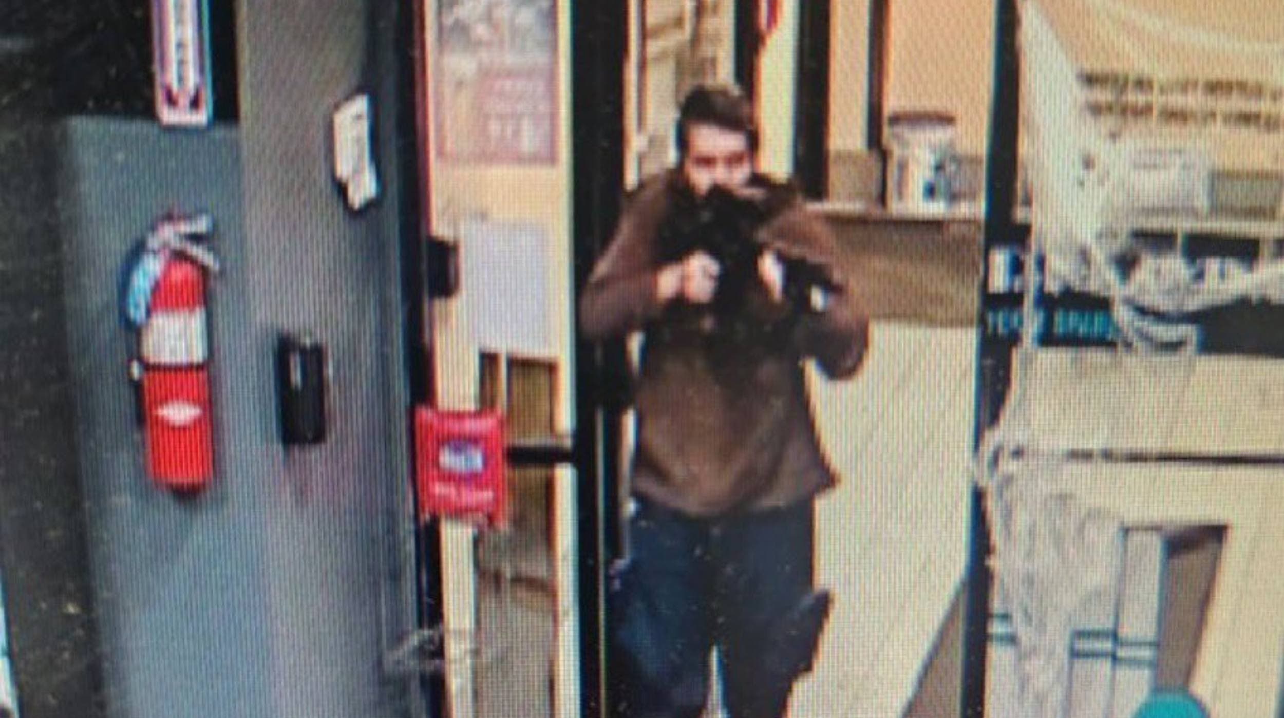 En las imágenes publicadas en redes sociales por la oficina del alguacil del condado de Androscoggin se puede ver a un hombre con un fusil de asalto entrando en una bolera.