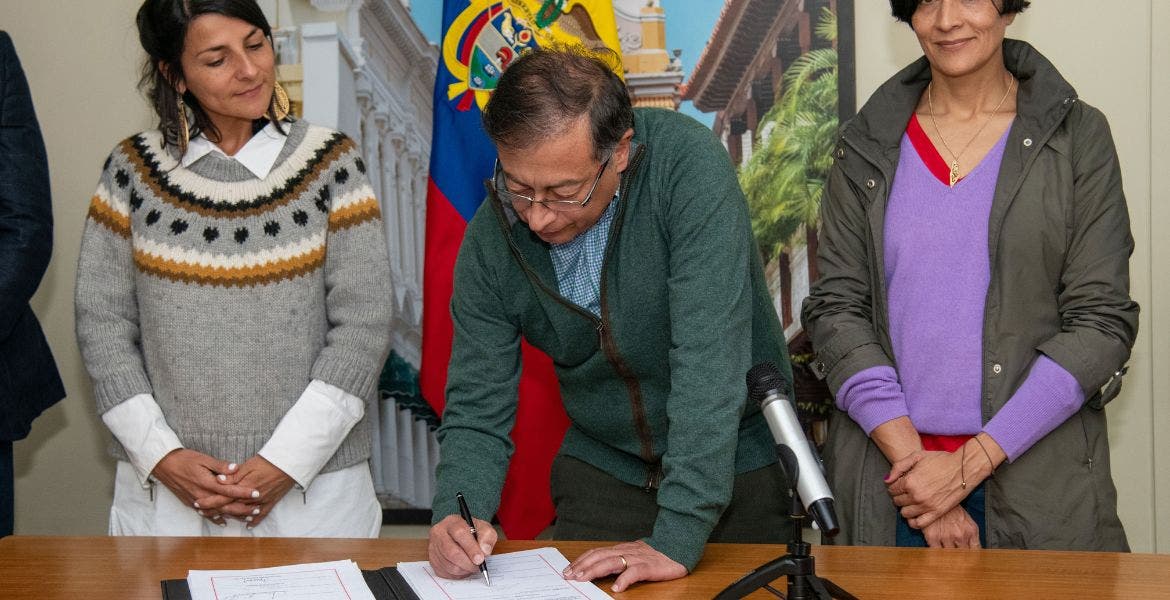 "Hemos firmado el tratado internacional que se convierte en ley de la República (…) que establece unos criterios de protección a los activistas, defensores del medioambiente en Colombia", dijo Petro, que estuvo acompañado por los ministros del Interior, Relaciones Exteriores, Ambiente y Minas y Energía.