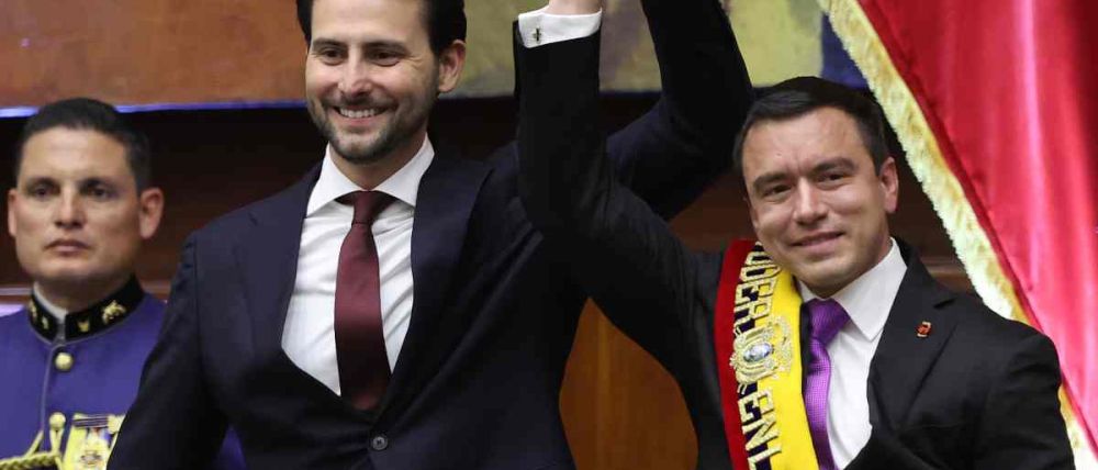Al juramento realizado por el mandatario le siguió el de la vicepresidenta, María José Pinto, quien reemplaza en el cargo a Verónica Abad, quien mantuvo un agudo y enconado enfrentamiento con Noboa, quien desde un inicio la mantuvo alejada y apartada de su Gobierno.