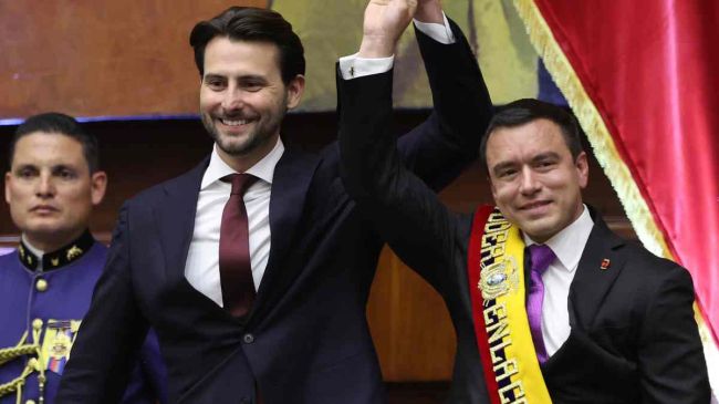 El mandatario ecuatoriano asumió el nuevo mandato en una ceremonia que tuvo la asistencia de delegaciones de más de 70 países, entre ellas los presidentes de Colombia, Gustavo Petro; y de Perú, Dina Boluarte; los dos países con los que Ecuador comparte frontera terrestre.