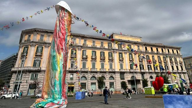 El regidor defendió la obra alegando que "es una representación estilizada de la relación entre Pulcinella y el corazón de los napolitanos" y que "el arte contemporáneo debe hacer discutir, el debate es signo de una ciudad viva".