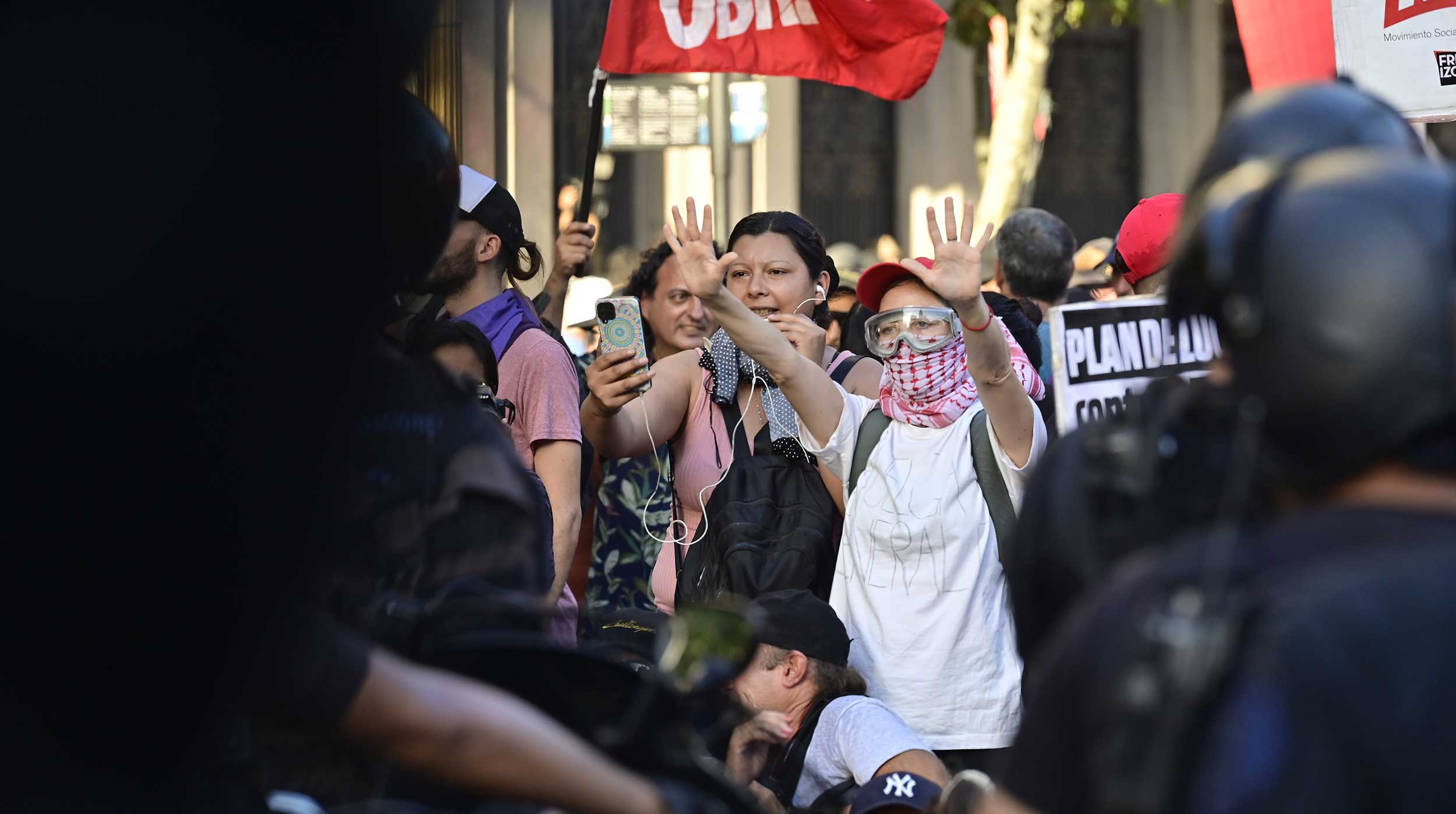Pese a que la concentración de organizaciones sociales, civiles y sindicales se mantuvo durante todo el día en calma, pasadas las 17.30 horas (20.30 GMT), el intento de algunos manifestantes de invadir la calzada, algo prohibido en el protocolo vigente del Ministerio de Seguridad, llevó a una dura contención de las fuerzas federales desplegadas en torno al Congreso.