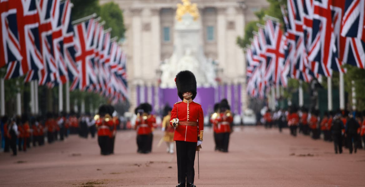 Después de un gran desfile con miles de voluntarios frente al palacio, Isabel II, con un vestido verde, salió al balcón junto con el príncipe Carlos, heredero de la corona; Camilla, duquesa de Cornualles, y los duques de Cambridge, Guillermo y Catalina, que estaban acompañados por sus tres hijos, Jorge, Carlota y Luis.