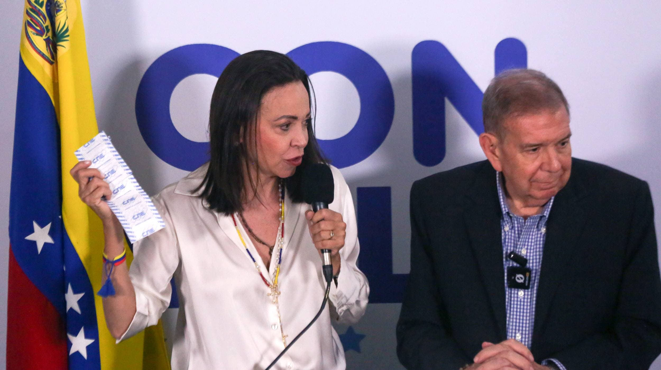 "Tenemos el 73.20% de las actas y, con este resultado, nuestro presidente electo es Edmundo González Urrutia. (...) La diferencia fue tan grande, tan grande, la diferencia fue apabullante, la diferencia fue en todos los estados de Venezuela", dijo en una rueda de prensa la exdiputada, junto con el abanderado de la Plataforma Unitaria Democrática (PUD), el mayor bloque opositor.