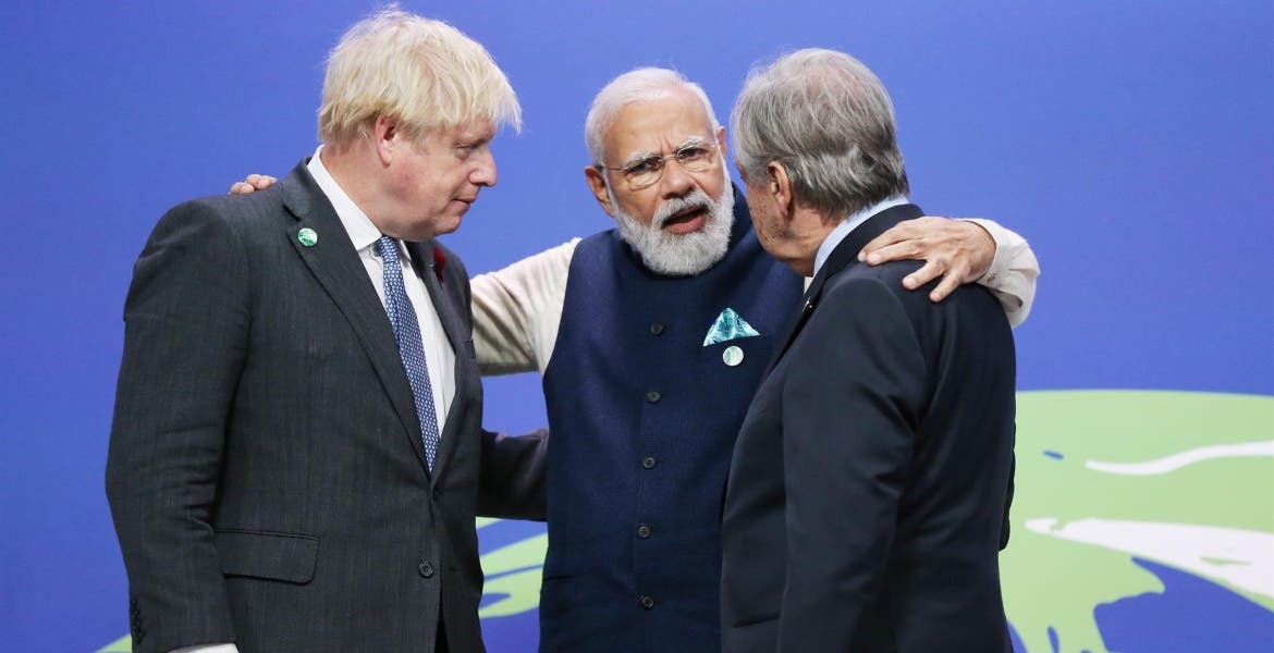 El primer ministro indio, Narendra Modi, aprovechó el lunes su discurso en el escaparate mundial de la cumbre del clima COP26 en Glasgow (Reino Unido) para anunciar por primera vez el plazo marcado por la India para alcanzar la neutralidad de carbono: "El año 2070".
