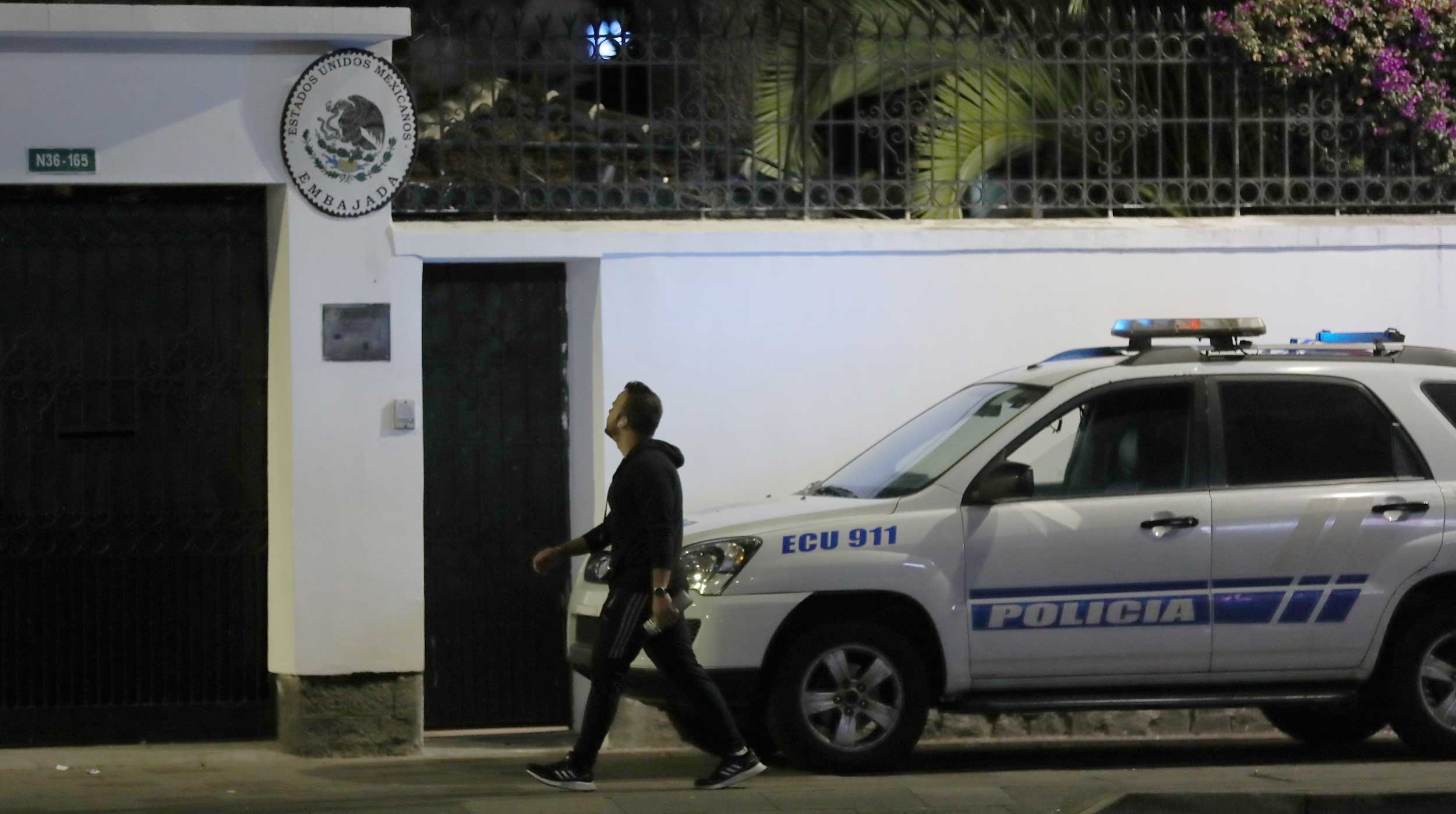 Mantienen vigilancia policial en Embajada de México en Ecuador
