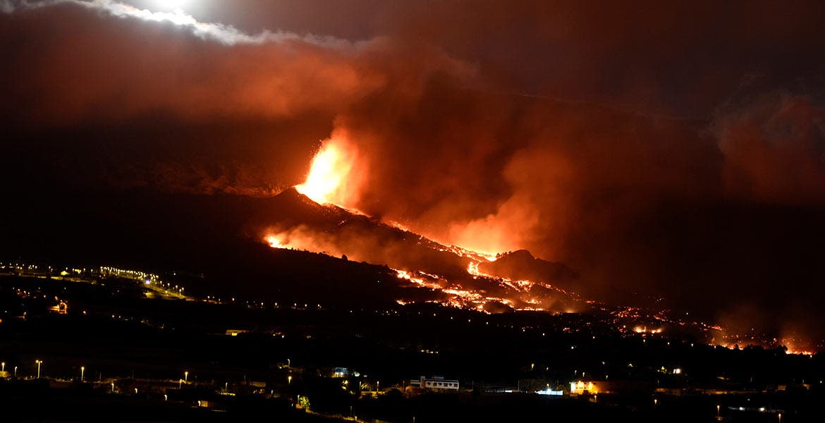 El movimiento de la lava se ralentiza y no llegará al mar la noche del lunes tras el segundo día de erupción del volcán en la isla española La Palma. pic.twitter.com/ade4b8DvfV