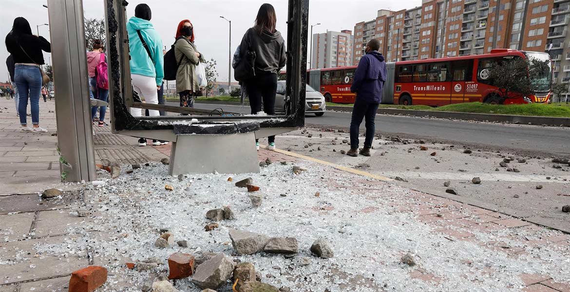 La Alcaldía también informó que 104 autobuses de transporte público de Bogotá fueron afectados por la acción de los vándalos y que tres de ellos fueron incinerados.