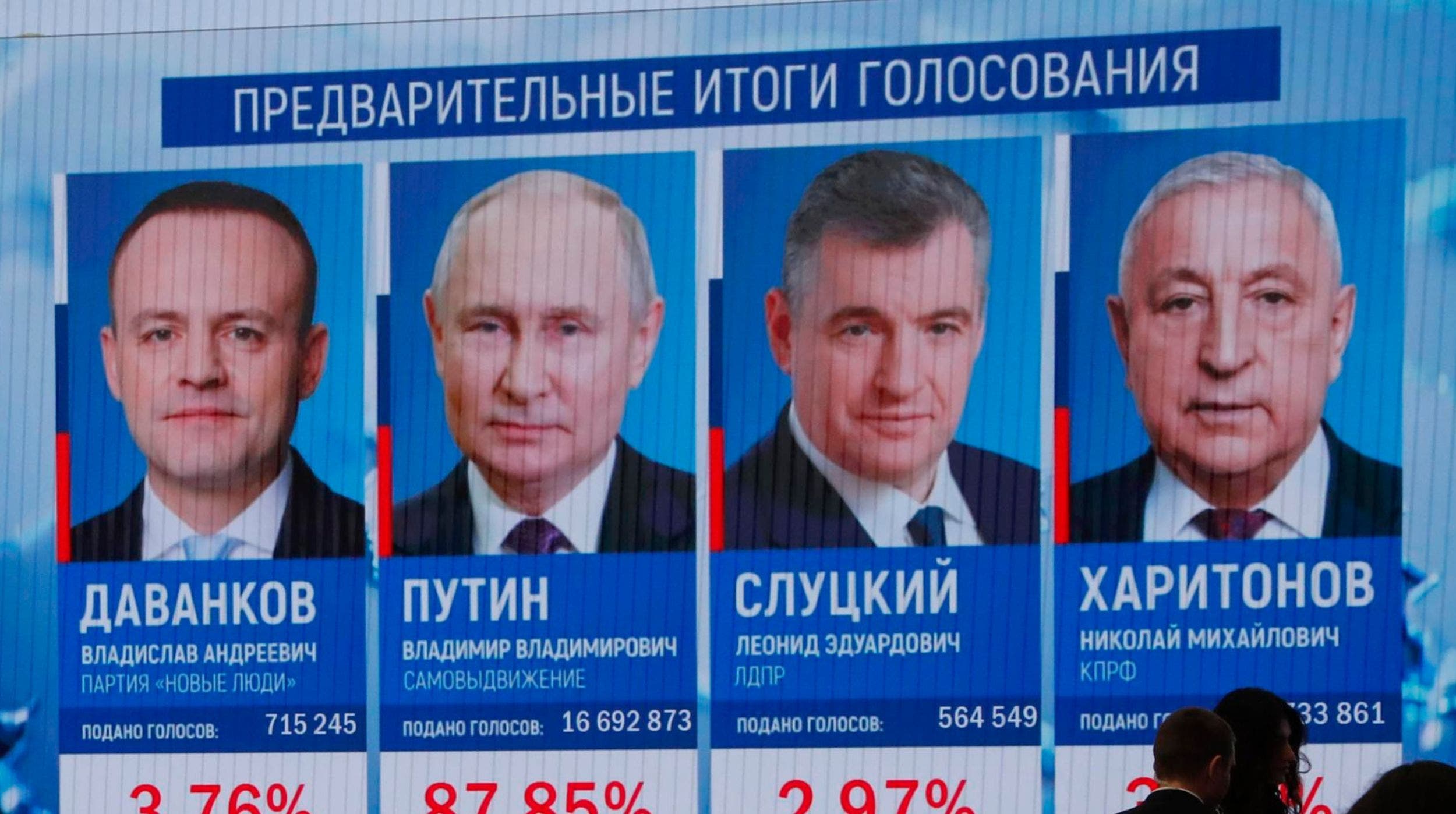 El segundo candidato más votado fue el comunista Nikolái Jaritónov con el 4 % de los votos, seguido por el representante del partido Gente Nueva, Vladislav Davankov, con 3,86 %. El último aspirante es el ultranacionalista Leonid Slutski, que suma el 3 % de las papeletas.
