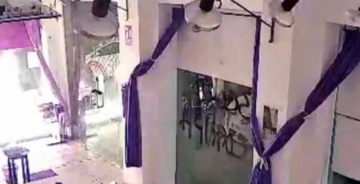 Las imágenes fueron captadas de madrugada hora local por cámaras de seguridad de la sede, en cuyos cristales aparecieron pintadas con expresiones como "No al terrorismo de Estado".