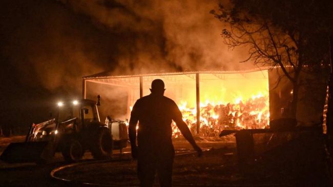 Durante las tareas de extinción, dos camiones cisterna de los bomberos fueron rodeados por el fuego, tuvieron que ser abandonados y fueron calcinados, según la emisora SKAI.