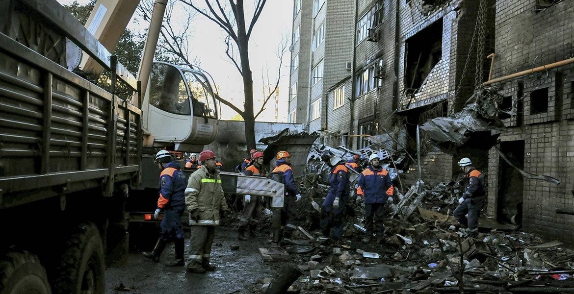 El accidente se produjo cuando un avión cazabombardero ruso Su-34 se estrelló en el patio de un edificio residencial de nueve plantas tras incendiarse uno de los motores durante el despegue de un vuelo de entrenamiento desde el aeródromo del Distrito Militar Sur, según indicó el Ministerio de Defensa.