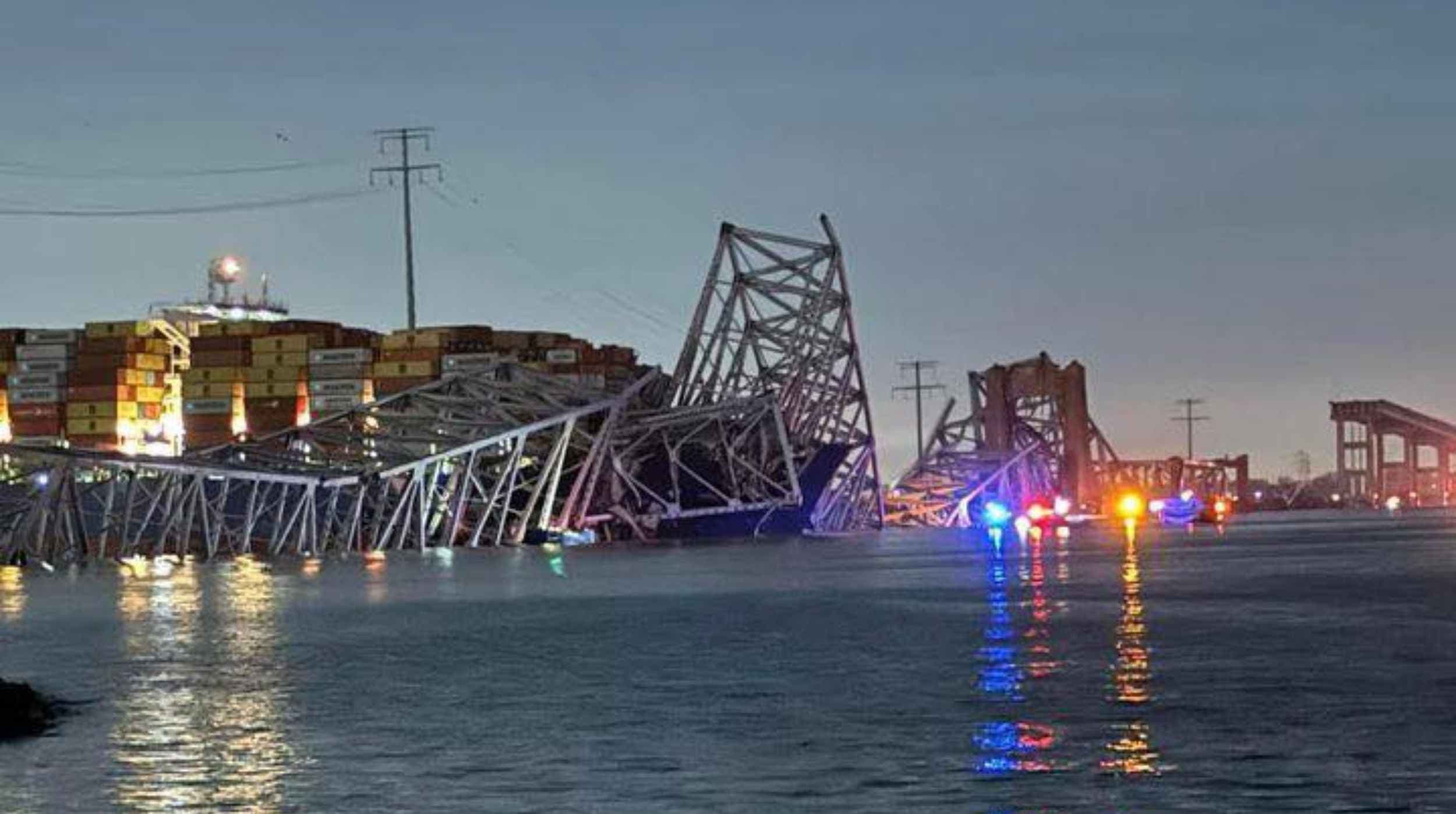 Un buque carguero acaba de impactar una de las columnas del puente FRANCIS SCOTT KEY en Baltimore, Estados Unidos. Por el tipo de sistema estructural del puente, se ha venido gran parte de la estructura abajo.