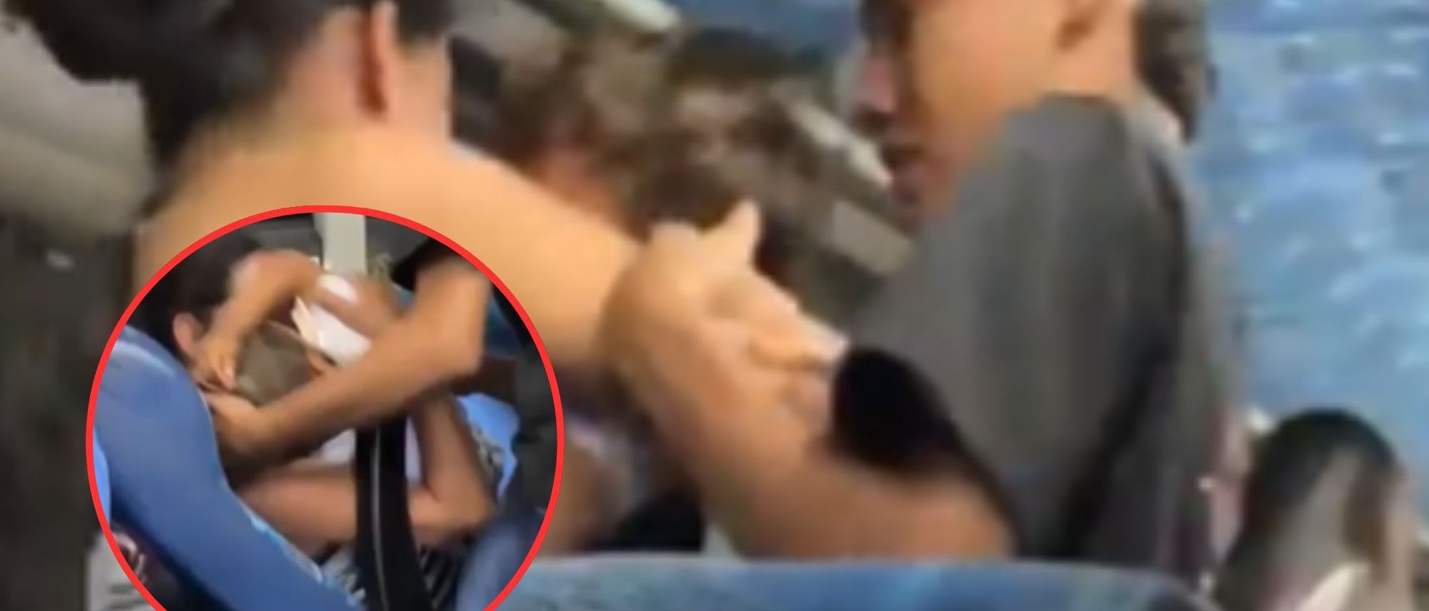 En un video que circula en redes sociales se observa el angustioso momento en que la madre saca a su hijo inconsciente de su asiento y desciende del vehículo con él en brazos, ante la mirada preocupada de los testigos.