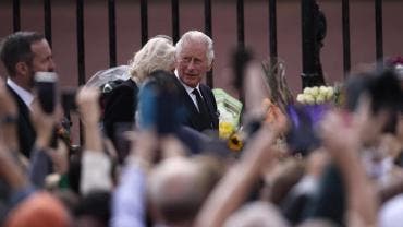 Carlos III saluda a cientos de personas afuera del Palacio de Buckingham