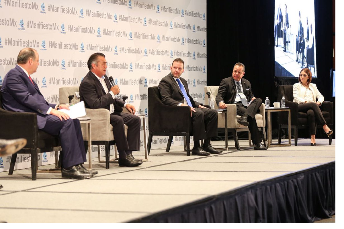 El gobernador de Nuevo León con licencia, dialogó desde la siete de la mañana con los integrantes de la Confederación Patronal de la República Mexicana (Coparmex). El evento se realizó en el Salón Don Alberto 3 y 4 del Hotel Hilton Reforma, en el Centro Histórico de la Ciudad de México.