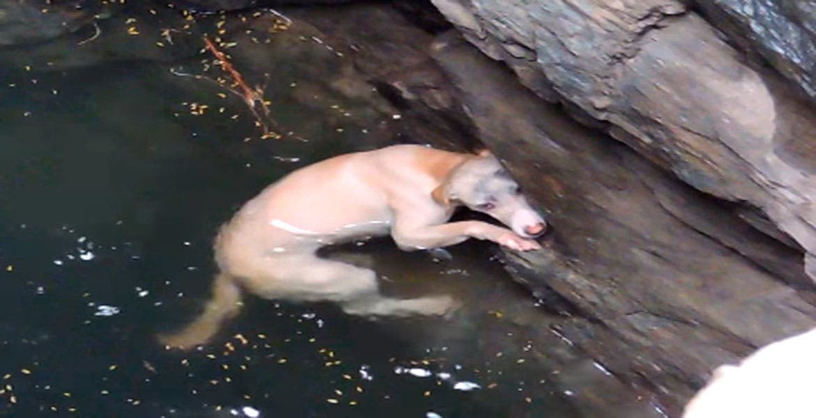 Una perrita logró ser rescatada luego de que cayera a un pozo y llevara horas nadando. Afortunadamente una persona la encontró y llamó a los servicios de emergencia para salvarla.