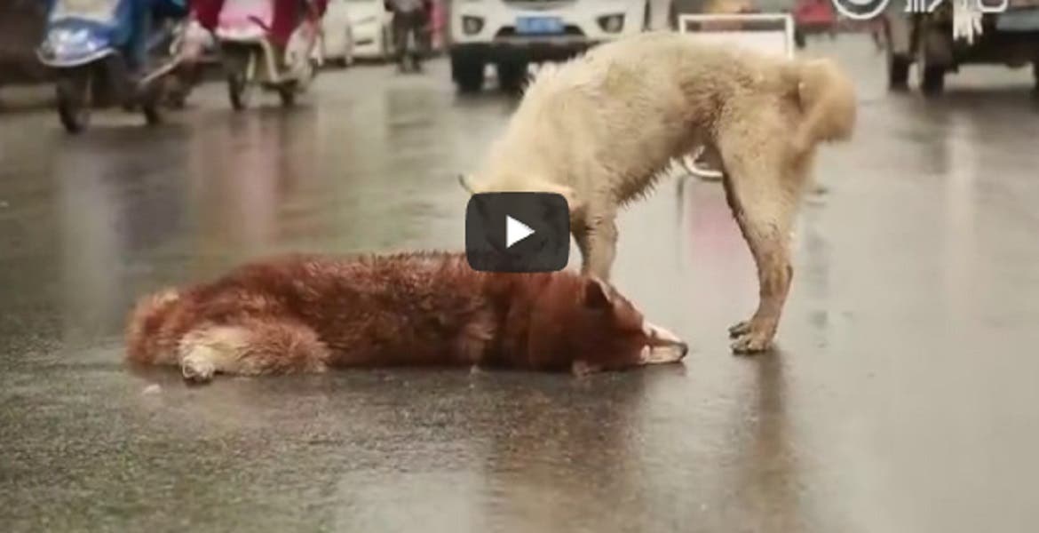 Perro trata de reanimar a su amigo atropellado [VIDEO]