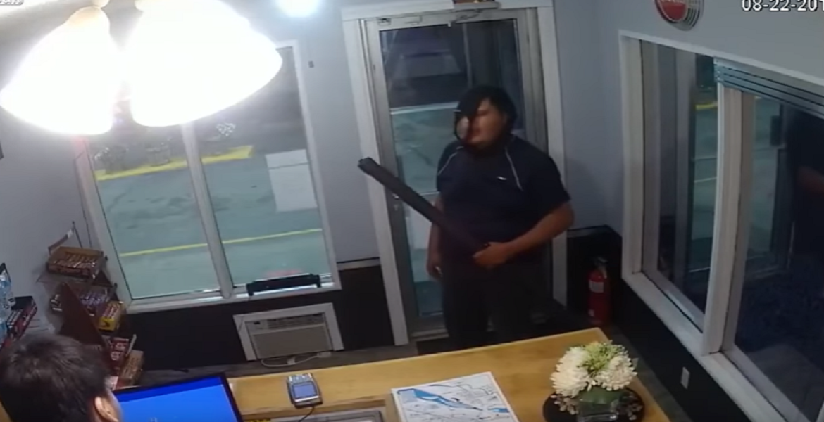 Este hombre protagonizó un intento de asalto bastante fallido en una empresa ubicada en North Battleford, en Canadá, al querer usar como arma una pantalla de proyección.