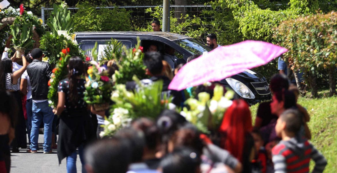 Poco antes de las 10:00 horas (16:00 horas GMT), los féretros con los cuerpos de padre e hija llegaron en una carroza funebre al cementerio La Bermeja bajo el resguardo del Cuerpo de Agentes Metropolitanos y la Policía Nacional Civil (PNC).