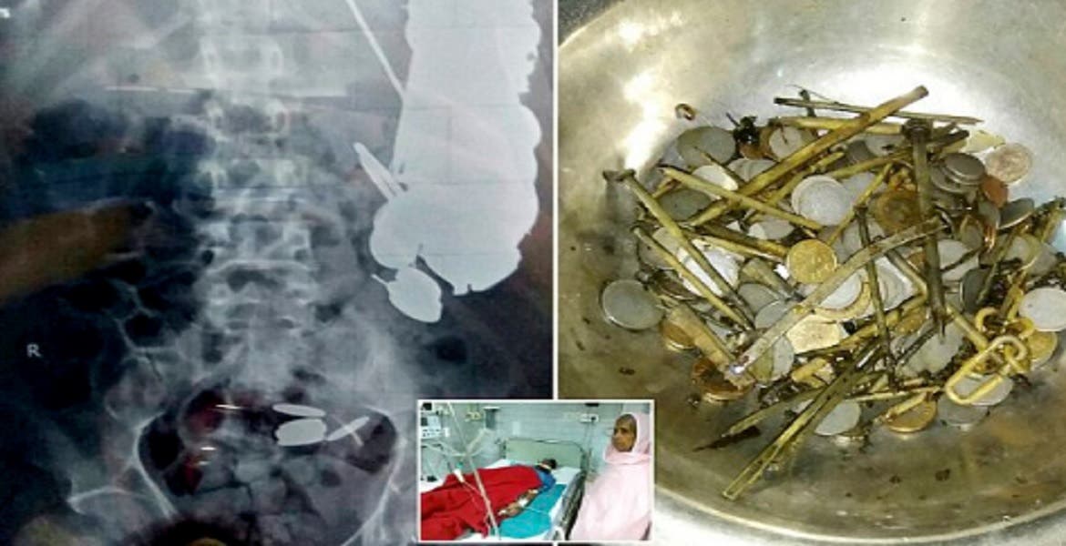 El medio The Times of India detalló que durante la cirugía se le extrajo al paciente cerca de 2 kilos de objetos metálicos de su estomago, desde trozos de una correa de acero para perros hasta metales puntiagudos como alfileres.