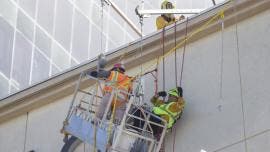 Rescatan a dos trabajadores atrapados en andamio de edificio en Tijuana