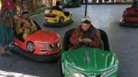 VIDEO: Talibanes armados juegan en ‘carros chocones’ en parque de atracciones de Afganistán