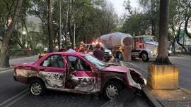 Tráiler choca con taxi en Azcapotzalco; deja dos lesionados
