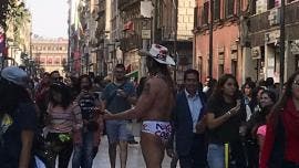 Toma por sorpresa a capitalinos 'Naked Cowboy', camina en calzoncillos en el Centro Histórico