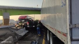Choque múltiple en el Circuito Exterior Mexiquense deja varios lesionados Se registró un fuerte choque múltiple a la altura del kilómetro 20 del Circuito Exterior Mexiquense, que hasta el momento ha dejado un saldo preliminar de cinco personas heridas, además de complicaciones en la vialidad (X: @jesusensastigue)