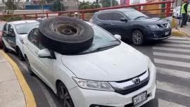 Llanta de tráiler sale disparada y cae en parabrisas de auto en Circuito Interior