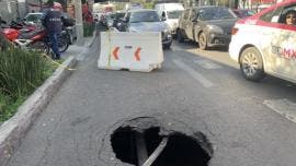 Reportan socavón en Eje 3 Oriente en Iztacalco