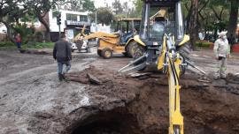 Nace socavón a unos metros de una fuga de agua en Miramontes