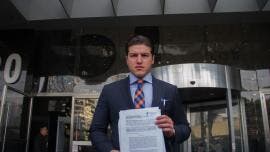 Presunto reportero asegura haberse arrodillado ante AMLO para no tapar cámaras Foto: Captura de video