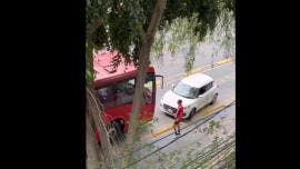 Automovilista circula en carril del Metrobús, se enoja porque una unidad bloquea su paso Foto X: @alerosales__