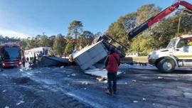 Choferes de la Asociación de Transportistas Unidos, de diversas rutas, principalmente Corporación Troncal y Santa María, bloquearon la autopista México-Puebla en ambos sentidos por tres horas y media, en protesta por la creciente ola de asaltos violentos de los que son víctimas, tanto ellos como los pasajeros (Foto: Especial)