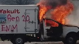 Normalistas de Michoacán queman vehículo en exigencia de plazas automáticas