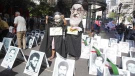 Cientos de iraníes protestan afuera de la ONU contra el presidente Raisí