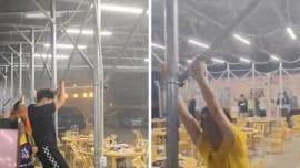 ¡Héroes improvisados! Clientes de un restaurante en China desafían la tormenta para salvar la techumbre