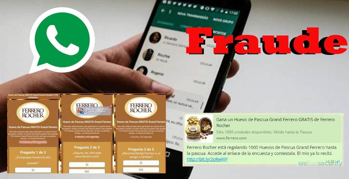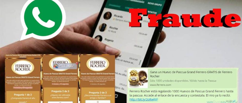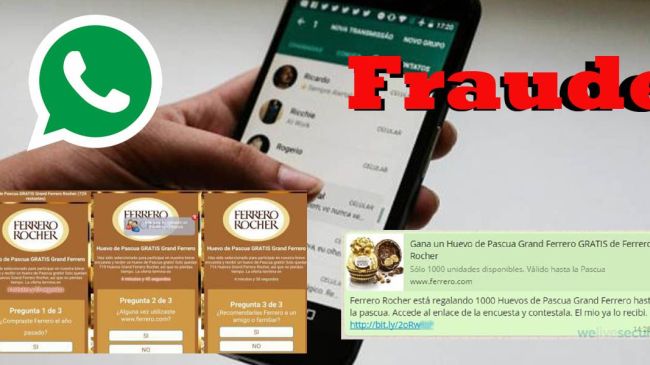 Así como en algunas campañas similares de falsos cupones de Mc Donalds o distintas aerolíneas, todo comienza con la recepción de un mensaje por parte de algún grupo o contacto. En este caso, el señuelo indica que la empresa Ferrero Rocher está regalando mil huevos de Pascuas, solo por contestar una encuesta, y que el contacto que envió el mensaje por WhatsApp ya recibió su premio.