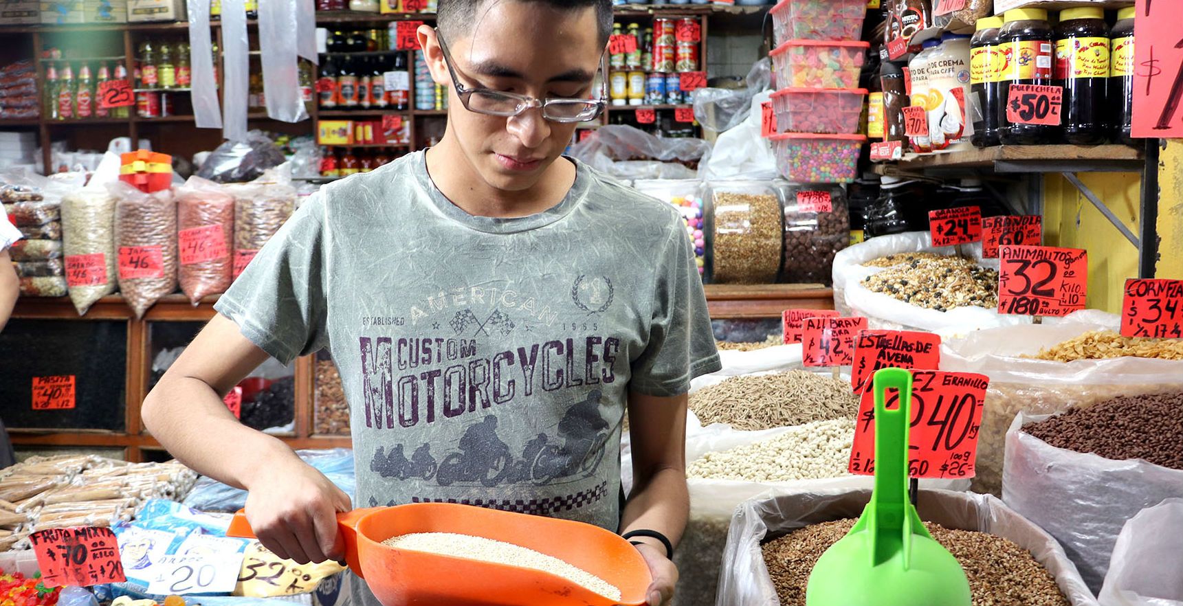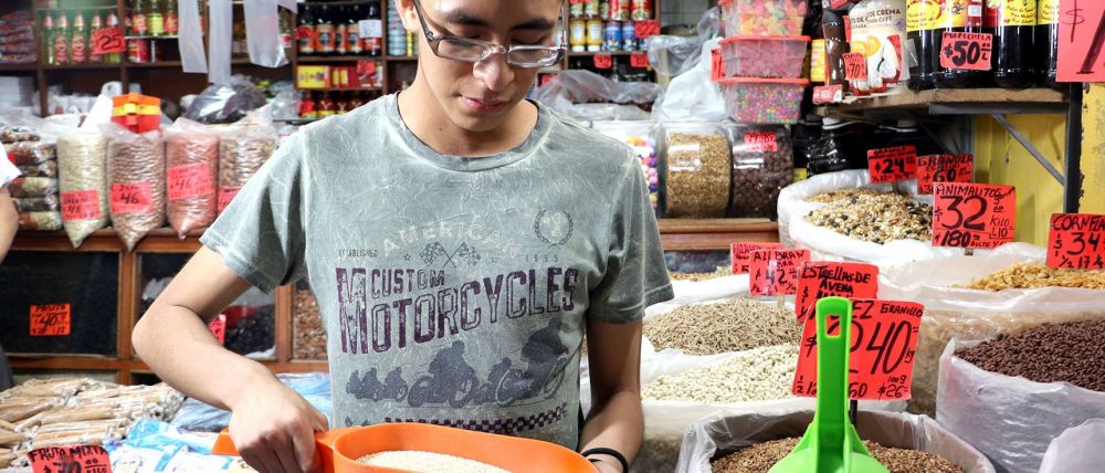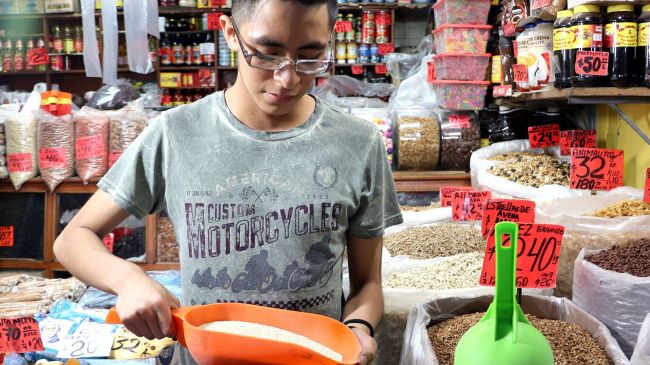 De aspecto granuloso, la quinoa es un pseudocereal muy parecido al amaranto; popularmente es conocida como “el grano de oro de los Andes”. Sus semillas poseen proteínas, Omega 3 y 6, fibra, minerales y vitaminas “E” y “B”. Se vende en las naves I-J, al menudeo, y en A-B, C-D y G-H, al mayoreo, del sector Abarrotes y Víveres.