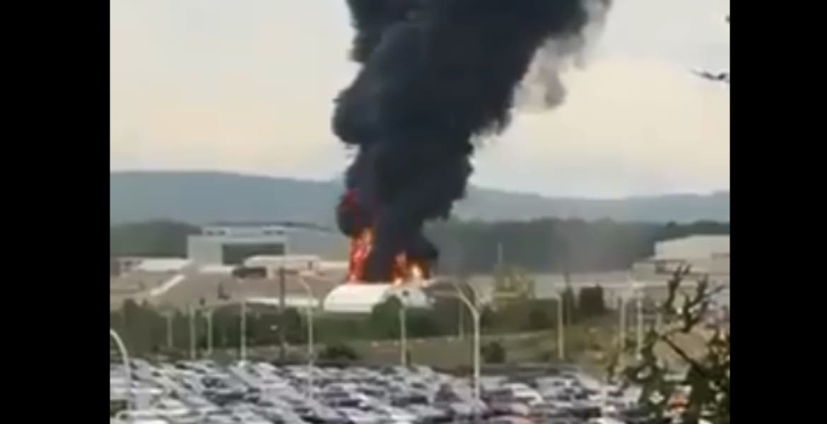 Tras el hecho, el aparato comenzó a incendiarse generando una espesa columna de humo negro que se elevó en el Aeropuerto Internacional Bradley en Windsor Locks, Connecticut.
