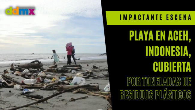 Una playa de la provincia indonesia de Aceh amanece repleta de residuos plásticos