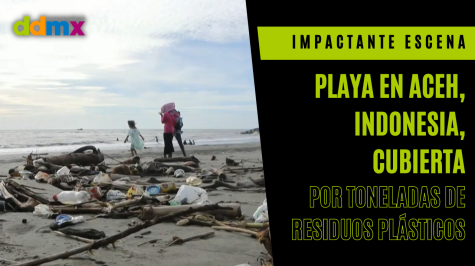 Enormes cantidades de residuos plásticos son arrastrados a las zonas costeras después de que las inundaciones llevaran al mar basura procedente de zonas residenciales en Aceh, Indonesia.