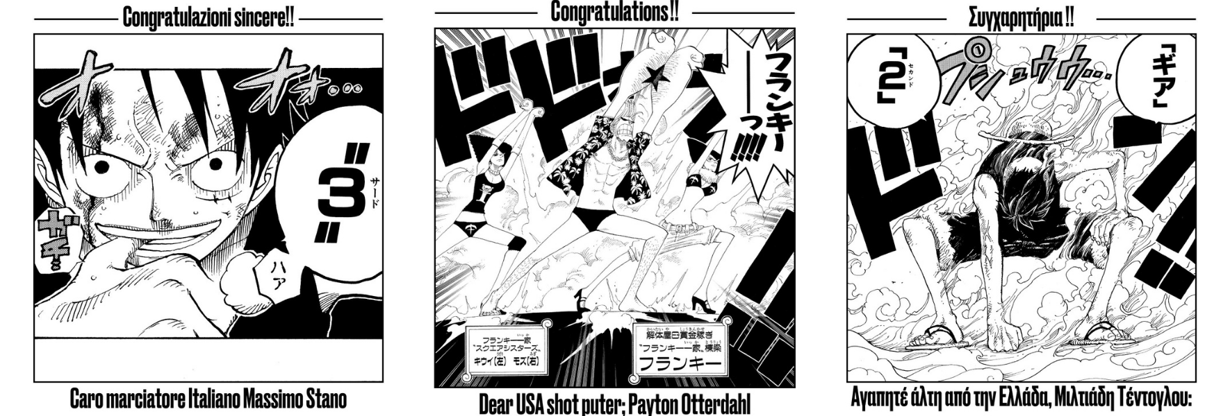 Todo esto ha despertado la euforia por parte de la comunidad de One Piece en todo el mundo, y no es para menos, ya que, también la cuenta oficial de la serie (Echiro Staff) ha reaccionado de manera favorable, al grado de dedicarle a los deportistas una viñeta de One Piece manga junto con su nombre y un mensaje elogiando su participación dentro de la competencia.