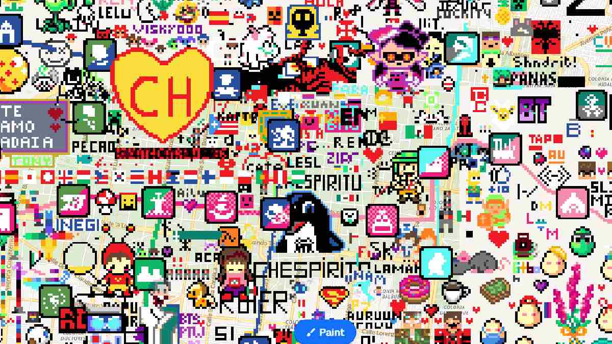 Ciudad de México.- Wplace es un nuevo sitio web que te permite plasmar tu arte pixel art en un mapa del mundo. Se ha vuelto muy popular gracias a la increíble organización de los usuarios, que colaboran para crear obras curiosas y llamativas.