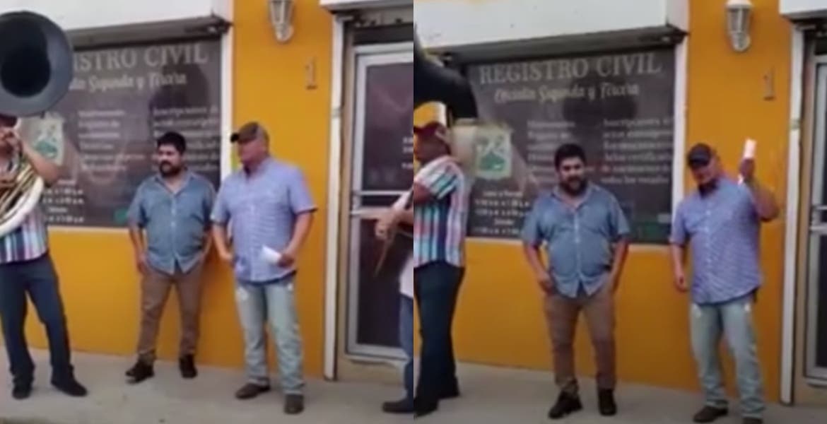 Al Registro Civil de Ciudad Acuña, Coahuila, llegó un hombre con un acta de divorcio en mano y acompañado de unos músicos de banda decidió festejar el fin de su matrimonio.