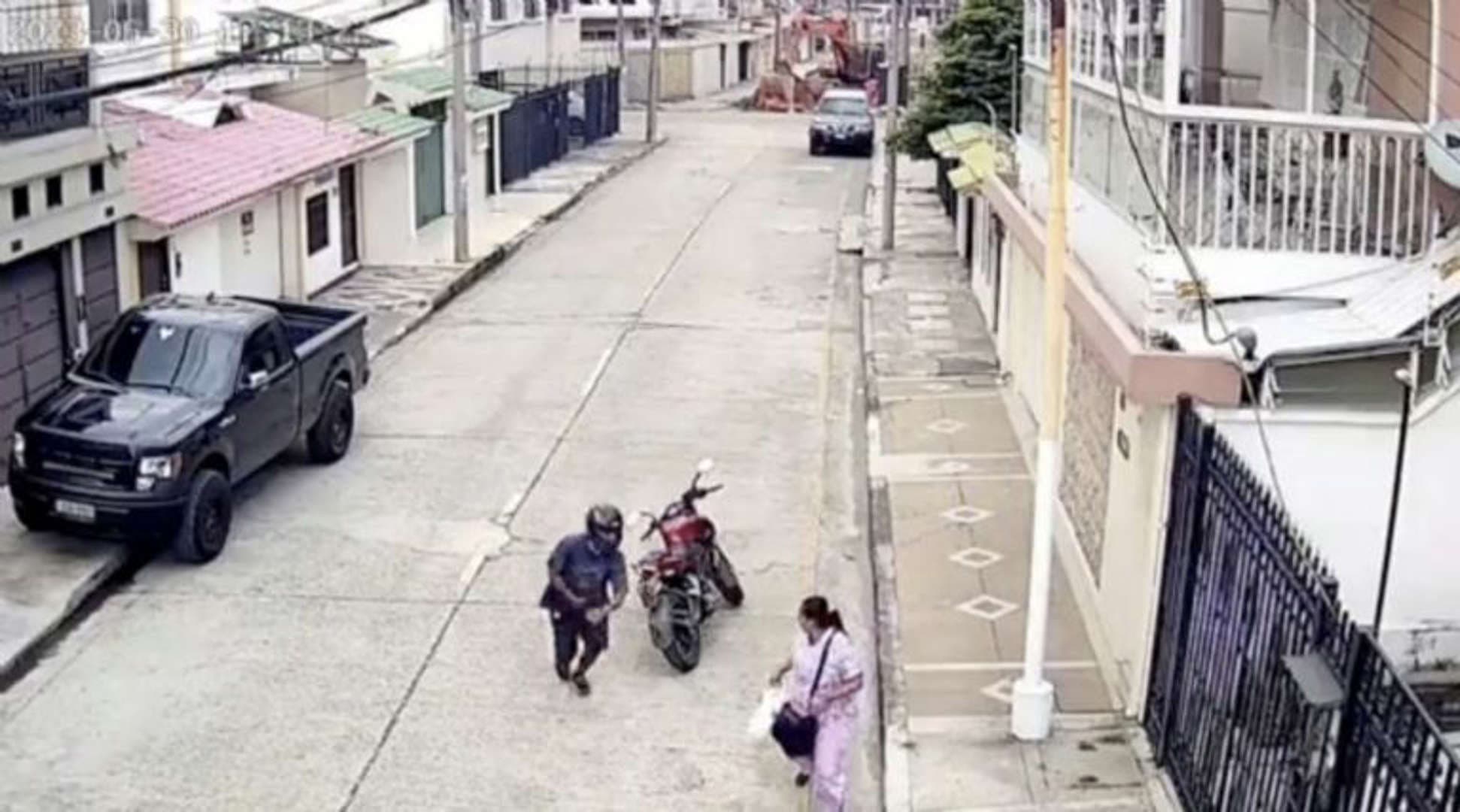 En las impactantes imágenes, se puede observar a un motociclista intentando asaltar a una mujer que camina por una calle solitaria. El ladrón baja de su moto y persigue a la víctima, quien desesperadamente trata de escapar sin éxito. El asaltante logra arrebatarle una bolsa y se prepara para huir en su motocicleta.